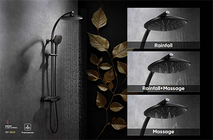 Our recessed-mount system keeps walls sleek — but hides multi-function spray modes: the full-coverage bliss of rainfall spray, the invigorating pulse of massage jets, and the layered comfort of combined flow. One tap switches your ideal shower rhythm.